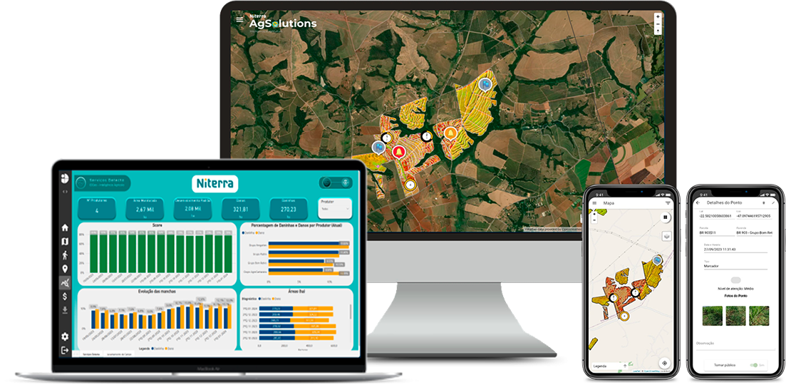 Monitoramento contínuo com imagens de alta resolução e radares, oferecendo uma visão completa e confiável das áreas cultivadas em qualquer condição.